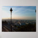 Une belle matinée surplombant la ville de Paris, France. La brume brûle alors que le soleil orange jaune illumine le ciel bleu sur la ville de l'amour. Une vue magnifique de l'église de Montmartre