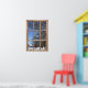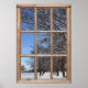 Cette belle scène enneigée montre un parc en hiver. La neige longe les branches des arbres et s'étend au fond du sol. Le ciel est bleu et le parc a été transformé en terre des merveilles hivernales. La vue est encadrée par un cadre de fenêtre en bois, créant l'effet d'une fausse fenêtre que l'on aperçoit au-delà du parc enneigé.