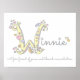 Affiche de monogramme W en art doodle décoratif parfaite pour la chambre ou la salle de jeux d'une fille dans des nuances de gris, blanc, jaune, rose et violet. Personnalisez avec le nom de votre enfant commençant par la lettre W, et la signification du nom pour un cadeau vraiment unique pour la chambre ou la nurserie de votre enfant, cet exemple est pour le nom Winnie Ami juste de la paix et de la réconciliation bénie. Impression d'affiche mignonne idéale pour un nouveau-né, un cadeau de baptême ou de shower de bébé. © Lettre unique W monogramme cœurs et fleurs dessin et conception graphique par Sarah Trett. www.sarahtrett.com pour www.mylittleeden.com