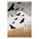 Walter The Lovely Ghost hante un champ et a perturbé les corbeaux qui prennent l'avion dans le ciel gris d'automne.