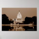 Belle photo de l'immeuble du Capitol américain la nuit, au-dessus de la piscine réfléchissante.