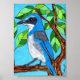 Décorez vos murs avec style grâce à cette affiche d'oiseaux d'art folklorique et vibrante. Dans cette oeuvre d'art colorée et fantaisiste, cette belle fosse à gomme bleue occidentale se dresse sur une branche d'arbre très détaillée et des feuilles verts contre un ciel bleu printanier sans nuages. Cette petite affiche ferait un grand cadeau pour les amateurs d'oiseaux qui aiment aussi le bleu couleur.