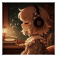 Dans une pièce cosy et faiblement éclairée, une jeune fille animée avec des casques est assise par un lecteur de disque, perdue dans la musique. Le ciel nocturne, parsemé d'étoiles, regarde par la fenêtre, ajoutant une touche de mystère à l'atmosphère sereine. Des notes musicales flottent autour d'elle, créant une scène enchanteresse et introspective.