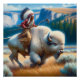 Magnifique paysage Whimsical White Buffalo Bison Scène Avec un Indien à cheval buffle à Yellowstone National Park Poster Carré Imprimer, encadrer et afficher cette belle affiche partout dans une maison ou un bureau.