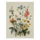 A lively gathering of wildflowers in shades of blue, white, yellow, orange, and pink stands gracefully with delicate green foliage. This classic botanical illustration captures the fresh charm of a summer meadow on a soft neutral background, evoking natural beauty and tranquility. Perfect for kitchen wall art, canvas prints, greeting cards, throw pillows, mugs, and home décor that brings gentle countryside serenity to any space.