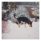 Cette image originale de la scène de la neige sur cette affiche de qualité pour chien mignon provient d’un tableau d’un petit chien de race mixte noir et bronzé, il reniflait et gratte l’épaisse couche de neige fraîchement tombée qu’il vient de découvrir pour la première fois dans le jardin. Ce petit chien s’appelle Eddie, c’est un berger allemand de race croisée et il profite du froid dans son jardin d’hiver. Dans l'arrière - plan de cette photo pittoresque de neige, vous pouvez voir un petit gnome de jardin gris tranquillement assis et lisant son livre sur le côté du petit étang gelé couvert de neige. Il y a aussi beaucoup d’arbustes de jardin enneigés et une vieille cabane en bois dans le jardin d’Eddie, tous ces bibelots et bobs ajoutent de l’intérêt à cette jolie scène de neige hivernale sur cette affiche d’art de qualité. La peinture originale d'Edie dans la neige est inclinée "Première neige" et est une peinture acrylique.