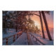 Poster Winter sunset in pine forest near sea