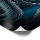 Art d'imaginaire bleu et noir représentant un loup solitaire debout sur une montagne devant une pleine lune. Ai a généré de l'art.