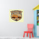 Surf City ici nous venons ! Design rétro cool avec le Woodie (ou Woody) - l'emblématique wagon de surf lambrissé. Patiné, vintage. Autocollant de wagon en bois. Empreinte de wagon en bois.