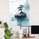 Doté d'un bonsaï solitaire au sommet d'une roche lisse au bord d'un ruisseau tranquille, ce poster zen minimaliste crée une ambiance paisible, parfaite pour une salle de méditation ou un espace de pratique de pleine conscience.