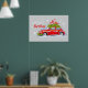 Affiches pour Joyeux Noël, avec une jolie illustration d'une voiture décorée festivement avec des branches de sapin et des boîtes avec des cadeaux sur le toit.