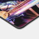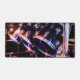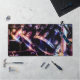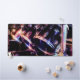 L'oeuvre de ZoeSPEAK sur ce Mat de bureau est une photographie originale d'un ensemble de tambours. Les tambours noirs brillants avec leurs jantes argentées reflètent les couleurs des lumières du studio, blues, rouges et verts. Des cymbales au-dessus des tambours attendent d'être frappées.