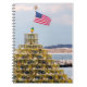 Pot de homard Noël paysage marin de l'arbre de Noël à Plymouth, Massachusetts avec le drapeau américain conçoit ce carnet.