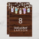 Un mariage rustique texturé numéros de table en bois avec des jarres hydrangéennes fleuries et une chaîne de lumières. Les numéros de table mariage font partie d'un jeu de faire-part de mariage.