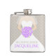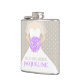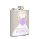 Elégante mariée graphique avec voile tenant une poitrine d'une fiole de hanche violette lilas stylisée rose mariage. Lit Blushing Bride Jacqueline. Personnalisez avec votre propre nom et titre ou mots pour aider à calmer la mariée le jour de sa grande fête. Aussi une excellente idée cadeau pour les douches nuptiales, les soirées de poule ou les répétitions mariages.
