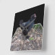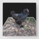 Poule, Horloge, Une poule noire et fluette est représentée dans une image en relief tridimensionnel.