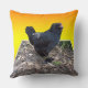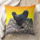 Chicken, Cushion, présenté sur un arrière - plan de jaune doré est un poulet moelleux noir dans une conception artistique dimensionnelle Popout, https://www.zazzle.com.au/naturalcauses*