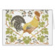 Conceptions sensibles de la période de Nouveau d'art des poulets et des coqs avec la verdure tissée autour. Couleurs douces de paprika, de vanille de beurre et de vert de mousse