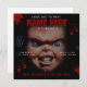 Poupée Chucky Bleu Rouge Invitation Sanglante. Faites une déclaration avec cette invitation de fête d'anniversaire personnalisée et thématique. Vous pouvez facilement l'envoyer par SMS ou l'imprimer et l'envoyer à vos invités.