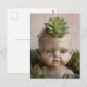 Poupée dans la carte postale de plantes grasses