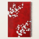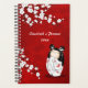 Poupée kokeshi mignonne dans un kimono rouge et blanc avec des fleurs de cerisiers blancs et un arrière - plan rouge chatoyant. Customisez-le avec votre nom et l'année.