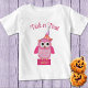 Mignonne chemise non éffrayante pour bébé ou tout-petit pour les filles. Imprimé avec l'illustration d'une chouette rose et d'un casquette de sorcière à pois orange avec la légende textuelle "Trick or Treat". Modifiez le texte si vous souhaitez personnaliser.