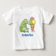 Une grenouille souriante vole un cône de glace avec sa langue. Texte personnalisé.
