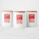 Design moderne en rouge et blanc pour vos étiquettes de pot de confiture personnalisés. Customisez-le par vous-même !