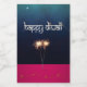 Illustration de Happy Diwali : des estampes festives pétillantes et dorées sur le ciel nocturne.
