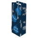 Offrez une belle bouteille de vin cette saison de vacances avec un sac cadeau de Noël bleu ornements de vin. Le design des sacs-cadeaux comprend un trio d'ornements de Noël suspendus avec des flocons de neige en chute et un arrière - plan bleu foncé. Autres cadeaux et objets de vacances disponibles avec ce design aussi.
