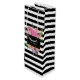 De jolies pivoines roses ornent l'avant de ce sac cadeau vin à rayures noires et blanches. Une plaque de texte noire, par-dessus les fleurs colorées, comporte un texte blanc personnalisable à votre guise. Des étiquettes de vin assorties sont disponibles.