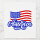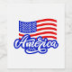 Illustration du mot "America" dans une police de caractères stylisée, avec un drapeau américain agitant au-dessus ! Le mot "Amérique" est rendu dans une couleur bleu profond avec un contour bleu plus clair, ce qui lui donne un effet tridimensionnel. Sous le mot, il y a une rangée de petites étoiles blanches, faisant écho aux étoiles sur le drapeau. Le drapeau américain est représenté avec des rayures rouges et blanches et un canton bleu rempli d'étoiles blanches. Le style général est propre et graphique, avec un thème patriotique.