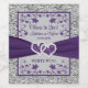 Portez votre thème mariage violet et argent sur les bouteilles de vin qui seront placées à chaque table. Ajoutez vos étiquettes de bouteilles de vin mariage violet et gris pour vous surprendre. Ces étiquettes de boissons romantiques ont un ruban violet central et une image de coeurs unis qui court la largeur du étiquette. Il y a une zone de texte grise avec des arcs floraux violets au-dessus et au-dessous de l'image du ruban et elle est encadrée d'une bordure en feuille d'argent simulée. La zone grise au-dessus du ruban dit, "Cheers to Love !" avec les noms de la mariée et du marié et la date du mariage. Sous le ruban, il y a des lettres pour indiquer ce qui est dans la bouteille avec l'exemple de texte disant, "VIN BLANC", mais vous pouvez le modifier ou le supprimer.