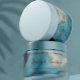 Un étiquette en pot de cosmétique avec un arrière - plan en faux or et marbre bleu. Ce étiquette mesure 8,25 pouces par 1,75 pouces (209 mm par 44 mm) et convient aux jarres d'un diamètre de 2,6 pouces (66 mm) ou plus et d'une hauteur étiquette d'au moins 2 pouces (50 mm). La plupart des jarres de 8 oz (240 ml) et de 16 oz (480 ml) correspondent à cette description, mais vérifiez les spécifications du pot pour être sûr. Ce étiquette fait un grand choix pour l'emballage des produits de beauté qui nécessitent des étiquettes plus grands comme les gommages à sucre, les beurres, les lotions et crèmes épaisses.