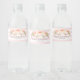 Texte personnalisé baby shower bouteille d'eau étiquette dans joli rose pastel clair et rayures blanches motif avec fleurs d'aquarelle rose pêche.
