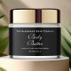 Un étiquette de jarre de cosmétique avec un arrière - plan noir au texte blanc. Ce étiquette mesure 8,25 pouces par 1,75 pouces (209 mm par 44 mm) et convient aux jarres d'un diamètre de 2,6 pouces (66 mm) ou plus et d'une hauteur étiquette d'au moins 2 pouces (50 mm). La plupart des jarres de 8 oz (240 ml) et de 16 oz (480 ml) correspondent à cette description, mais vérifiez les spécifications du pot pour être sûr. Ce étiquette fait un grand choix pour l'emballage des produits de beauté qui nécessitent des étiquettes plus grands comme les gommages à sucre, les beurres, les lotions et crèmes épaisses.