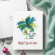 Ces cartes de Noël à la plage tropicale pliées sont ornées d'un palmier exotique d'inspiration insulaire et de Père Noël de vacances mignonnes. Les mots "Merry Beach-mas" sont placés en lettres à la main. La carte s'ouvre pour révéler une couleur rouge baie riche. Utilisez les champs modèle pour ajouter votre salutation personnalisée. Un choix charmant mais drôle à envoyer à vos amis et à votre famille cette saison de vacances. Si vous cherchez d'autres modèles de cartes de Noël sur la plage, visitez le www.zazzle.com/dotellabelle Unique aquarelle art et design de Victoria Grigaliunas de Do Tell A Belle.