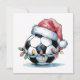 Célébrez les fêtes avec cette charmante illustration aquarelle représentant un ballon de football festif portant un chapeau de Père Noël et ornée de lumières de Noël colorées. Parfait pour les joueurs de football, les entraîneurs, les fans et tous ceux qui aiment combiner leur passion pour le beau jeu avec la joie de Noël. Cette carte de voeux unique reflète l'esprit du football et de la saison des Fêtes, ce qui en fait un choix idéal pour envoyer des voeux chaleureux à d'autres amateurs de football. L'oeuvre d'art fantaisiste présente un ballon de football noir et blanc classique transformé en un personnage de Noël charmant, avec des garnitures blanches moelleuses et un chapeau de Père Noël rouge joyeux. Que vous fêtiez avec votre équipe de football, que vous envoyiez des voeux de vacances à des amis sportifs ou que vous cherchiez la carte parfaite pour un membre de la famille aimant le football, ce design rassemble deux thèmes bien-aimés en un seul salut mémorable.