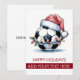 Célébrez les fêtes avec cette charmante illustration aquarelle représentant un ballon de football festif portant un chapeau de Père Noël et ornée de lumières de Noël colorées. Parfait pour les joueurs de football, les entraîneurs, les fans et tous ceux qui aiment combiner leur passion pour le beau jeu avec la joie de Noël. Cette carte de voeux unique reflète l'esprit du football et de la saison des Fêtes, ce qui en fait un choix idéal pour envoyer des voeux chaleureux à d'autres amateurs de football. L'oeuvre d'art fantaisiste présente un ballon de football noir et blanc classique transformé en un personnage de Noël charmant, avec des garnitures blanches moelleuses et un chapeau de Père Noël rouge joyeux. Que vous fêtiez avec votre équipe de football, que vous envoyiez des voeux de vacances à des amis sportifs ou que vous cherchiez la carte parfaite pour un membre de la famille aimant le football, ce design rassemble deux thèmes bien-aimés en un seul salut mémorable.