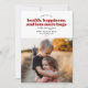 Cette carte de vacances moderne contient les mots "vous souhaitant santé, bonheur, et beaucoup d'autres câlins dans l'année à venir". Il a de l'espace pour une seule photo et serait parfait comme une carte de vacances ou une carte de nouvelle année.