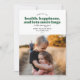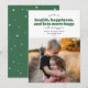 Cette carte de vacances moderne contient les mots "vous souhaitant santé, bonheur, et beaucoup d'autres câlins dans l'année à venir" écrits en vert et noir. Il a de l'espace pour une seule photo et serait parfait comme une carte de vacances ou une carte de nouvelle année.