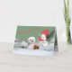 Carte de Noël de Bichon posant avec le bonhomme de neige pour vous souhaiter un "Joyeux Noël"