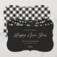 Simple, mais élégant personnalisé buffle noir et blanc plaid Carte Joyeuse Nouvel An avec lumières à cordes sur un arrière - plan noir. Le buffle noir et blanc plaçait l'arrière - plan à l'arrière. Personnalisez facilement en ligne.