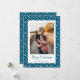 Cartes de Noël bleu personnalisées avec étoiles et un titre de script magnifique. Personnalisez facilement ces cartes bleues de Noël avec votre image et un nom de famille.