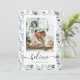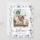 Elégantes cartes de Noël botaniques avec des illustrations d'aquarelles de botaniques d'hiver dans les tons bleu et gris. Personnalisez facilement ces cartes de voeux de Noël avec votre photo et votre texte.