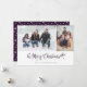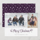 Des cartes photos de Noël Joyeux et violets avec deux photos avec un titre calligraphique sur le devant et un arrière - plan violet avec des étoiles à l'arrière. Personnalisez facilement ces calligraphies violettes cartes photos de Noël avec vos images, un nom de famille et l'année.