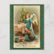 Illustration vintage un ange de Noël laissant des cadeaux. Texte : Un Noël saint et heureux. Disponible sur deux tailles de cartes, cartes postales et autocollants pour sceller des enveloppes ou décorer des lettres et des emballages. Les magnifiques cartes de Noël donnent une sensation de fête à l'ancienne. Achète un ou cent. Entièrement personnalisable, ajoutez votre propre salutation, personnalisez le contenu de votre coeur.