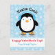 Carte postale de pingouin mignonne, parfaite pour l'échange de cartes de la Saint-Valentin pour enfants.