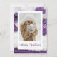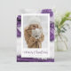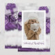 Cartes personnalisées de Noël violet avec un titre écrit à la main, et un cadre photo avec cadeaux de Noël et chute de neige. Personnalisez facilement ces cartes de Noël avec votre photo et votre nom de famille. Créez une carte de Noël violet magique pour votre famille et vos amis en cette période de fêtes.