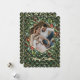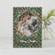 Elégantes cartes de Noël vert et or avec cadre photo géométrique entouré d'une couronne d'aquarelle sur un arrière - plan plaid de buffle vert et noir. Personnalisez facilement ces cartes de Noël avec votre image, votre texte et votre nom de famille.